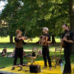 « TRIO BALADINS » un charmant alliage de barbes hirsutes, de cheveux emmêlés avec subtilité, d’un soupçon d’oeil complice, de cordes qui claquent, d’archets hardiment déplumés, de voix savamment éraillées, et de soufflets tantôt brise, tantôt mistral nous ont égaillés avec leur musique. Ce fut un grand succès.